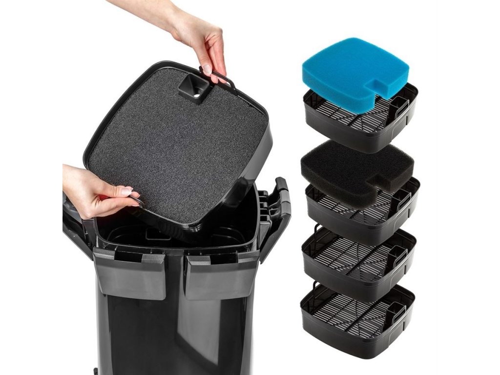 Hypermax má obrovskou filtrační kapacitu 15,9 litru. To spolu s nejúčinnějším, energeticky nejúspornějším a elektronicky řízeným čerpadlem na trhu určuje schopnost zvládnout akvária s velkým rozsahem objemů: od 200 až po celých 1500 litrů. Sada 2 vstupních a 2 výstupních hadic zajišťuje dostatečnou cirkulaci vody v celém akváriu, čímž účinně zabraňuje vzniku mrtvých zón.