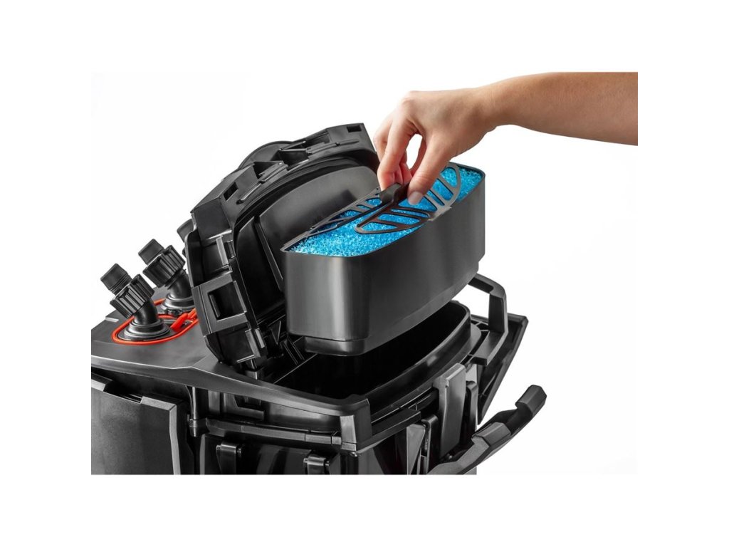 Předfiltr Objemný předfiltr o objemu 1,5 litru zabudovaný do víka přístroje účinně zadržuje velké nečistoty, což výrazně snižuje četnost servisu filtru. Čištění samotného předfiltru je velmi jednoduché a nevyžaduje ani vyjmutí přístroje ze skříně. Stačí jen zvednout víko, vyjmout houbu z koše a opláchnout ji pod tekoucí vodou. Systém dvojitého kulového ventilu Akvaristé vědí, že kritickou fází práce vyžadující přístup do vnitřku filtru je obvykle odpojení přívodní a odvodní hadice od přístroje. Voda, která zůstává ve filtru, se obvykle vylévá na podlahu, což způsobuje oprávněné podráždění. Aby se tomu předešlo, používá Hypermax patentovaný systém dvojitého kulového ventilu. Ty současně uzavírají vstupní a výstupní otvor filtru ve víku a světlost hadice a blokují nekontrolovaný únik vody. Samočinné nasávání filtru stačí provést 2 až 4 pohyby pístem a je hotovo. Filtr bude zaplaven akvarijní vodou. Jednoduché?Sada příslušenství potřebného k instalaci a spuštění filtru obsahuje - hadice, - kolena, - přepadové trubky, - rozstřikovač, - vložky do košů na filtrační média: - houba na předfiltr STANDARD SPONGE 10 PPI, - houba na předfiltr STANDARD SPONGE 20 PPI, - houba na předfiltr STANDARD SPONGE 30 PPI + 2 prázdné koše na filtrační média - k naplnění podle potřeb vašeho akvária. Doporučujeme vybrat si filtrační média z naší široké nabídky: - BioCeraMAX 600 - BioCeraMAX 1200 - BioCeraMAX 1600 - CarboMAX Plus - ZeoMAX Plus - NitroMAX Pro - PhosMAX Pro.