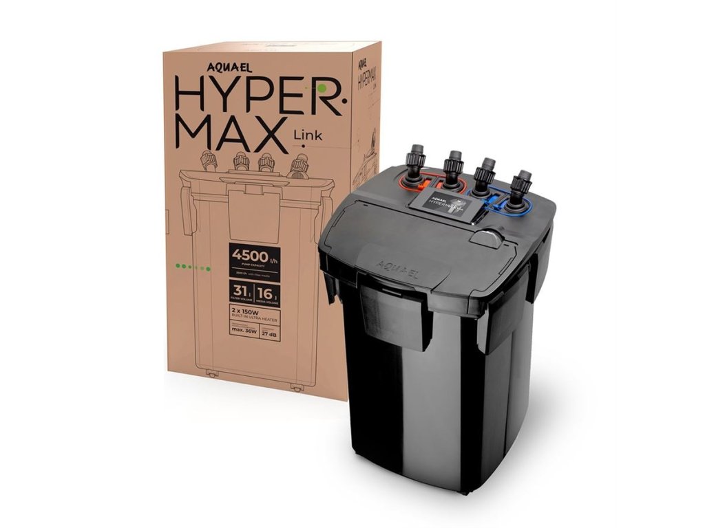 Hypermax Link je filtrační zařízení nové generace určené pro zkušené i začínající akvaristy. Kombinuje funkce filtrace a ohřevu a zajišťuje optimální životní podmínky v akváriu. Ovládá se na dálku pomocí aplikace AQUAEL AQU@RIUM.