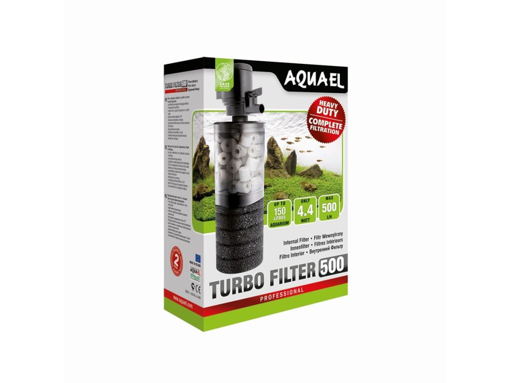 Filtr Aquael Turbo Filter 500 je určen pro čištění a provzdušňování vody v akváriích. Poskytuje dvojitou filtraci a to mechanickou a biologickou. Aquael Turbo Filter 500 je tichý a energeticky úsporný. Všechny modely vnitřních filtrů Aquael Turbo Filter jsou vybaveny speciální přísavkou, která utlumí veškeré vibrace, které jsou přenášené na čelní sklo. Rozměry činí 70 x 76 x 239 mm. Určeno pro nádrže menší než 150 l.příkon: 4,4 W