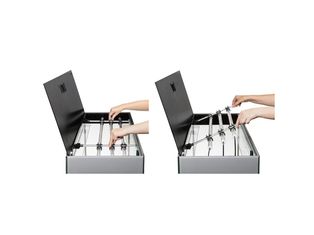 | Možnost instalace více zářivek Kryt akvária je schopný nést až 9 LED zářivek Leddy Tube. |