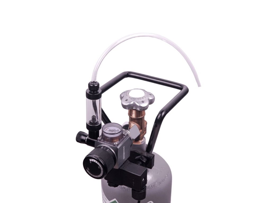 Kompletní CO2 set složený z lahve, regulátoru, hadičky a dropcheckeru.