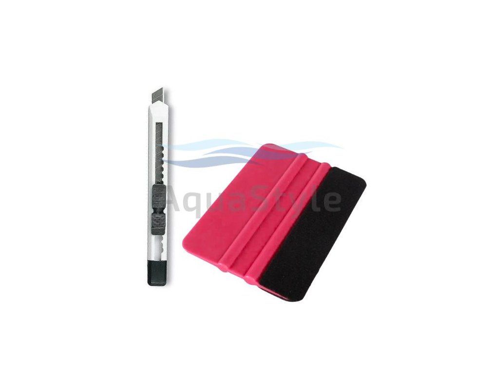 Tenký lámací nůž pro zařezávání tapety a měkká stěrka pro vyhlazení bublin, která zabraňuje prodření folie.