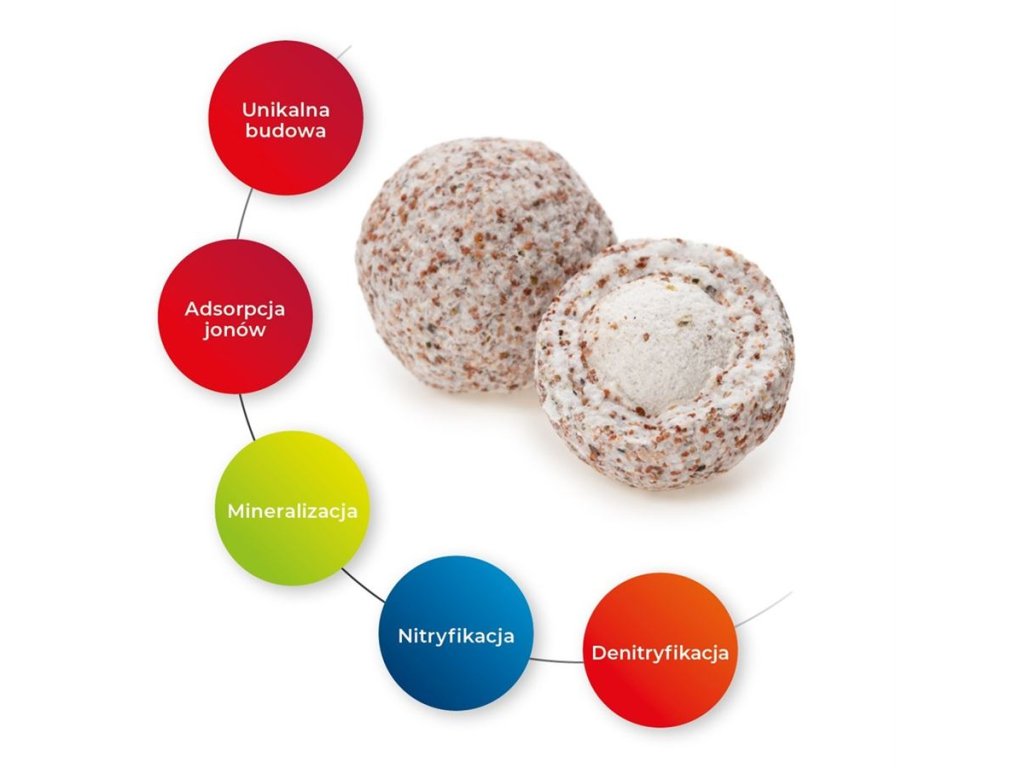 PearlMax Bio jsou filtrační média s aktivní adsorpční schopností. Mají uvnitř dutiny, které vytvářejí koncentrační rozdíly mezi ionty NH4 a NO2 a aktivně je adsorbují na svůj povrch. Tímto způsobem eliminují tyto škodlivé látky a vytvářejí zdravější prostředí pro ryby a rostliny. Tato jedinečná filtrační média jsou bohatá na stopové prvky, které se uvolňují postupně. Tím podporují metabolismus vodních organismů a přispívají k jejich zdravému růstu a vývoji. PearlMax Bio nejen čistí vodu, ale také podporuje zdraví obyvatel vašeho akvária.