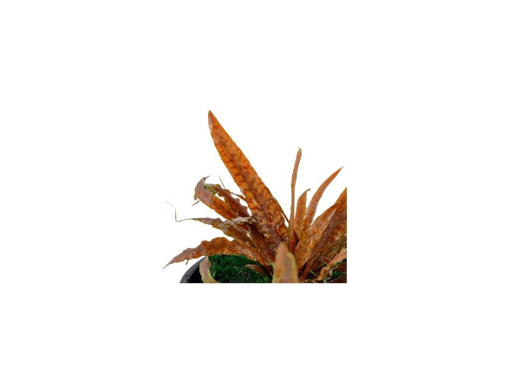 Tato drobná kryptokoryna pochází z Asie a přirozeně roste například v Thajsku. Úzké, červenohnědé listy mají výraznou tmavou kresbu a krásně zvlněné okraje. Jednotlivé listy dorůstají šířky přibližně 1–3 cm a délky až 15 cm, díky čemuž působí rostlina lehce a elegantně. Snadno se kombinuje s ostatními akvarijními rostlinami a umožňuje vytvářet pěkné kontrasty.