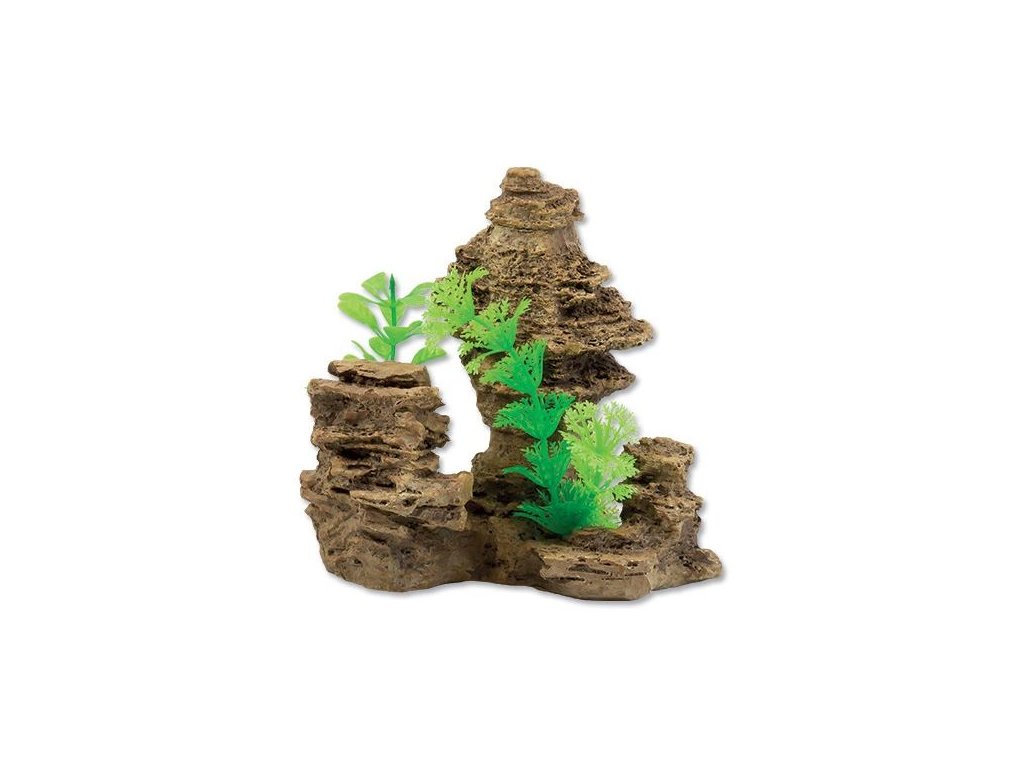 Dekorace Skála s rostlinou 14 cm