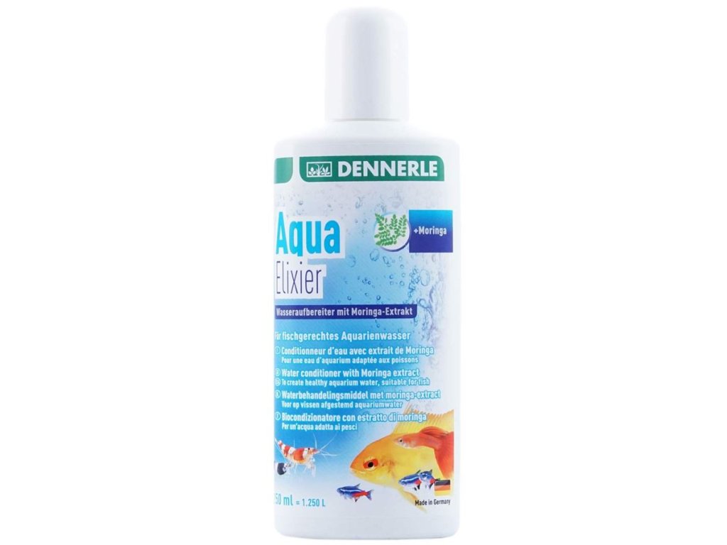 Aqua Elixir je vodní kondicionér pro sladkovodní akvária, který okamžitě neutralizuje chlor, váže těžké kovy a chrání ryby pomocí přírodního extraktu z listů stromu moringa – známého jako „strom života“. Obohacuje vodu o chybějící látky a vytváří ideální podmínky pro žábry, sliznice i ploutve vašich ryb.