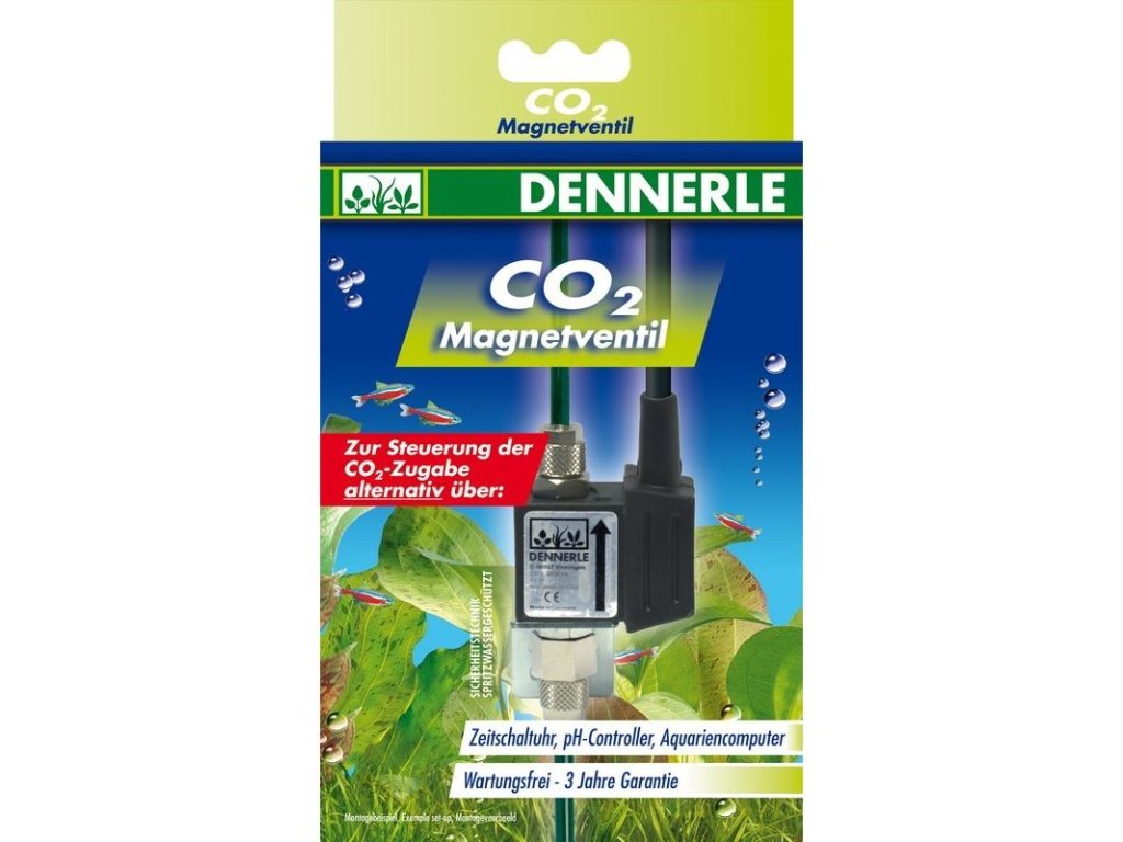 "Komponenty značky DENNERLE jsou určené přímo pro akvaristiku a aquascaping, jejich instalace je tedy velmi snadná a o to lehčí a přesnější je případná regulace dávkování CO2. Komponenty DENNERLE nabízí velmi luxusní a víc než spolehlivé řešení. Díky těmto vlastnostem jsou sady DENNERLE to nejlepší na současném trhu."Magnetický ventil (noční vypínání) slouží k tomu, aby sepnutím přerušilo přívod oxidu uhličitého do akvária. Komponent tedy šetří Vaše cenné CO2 a podle Vašeho nastavení na spínacích hodinách nebo pH kontroleru pouští CO2 do akvária.