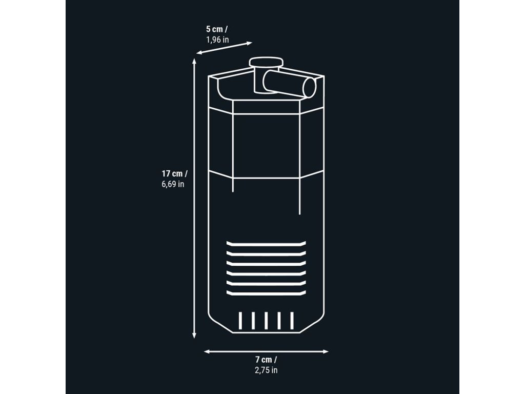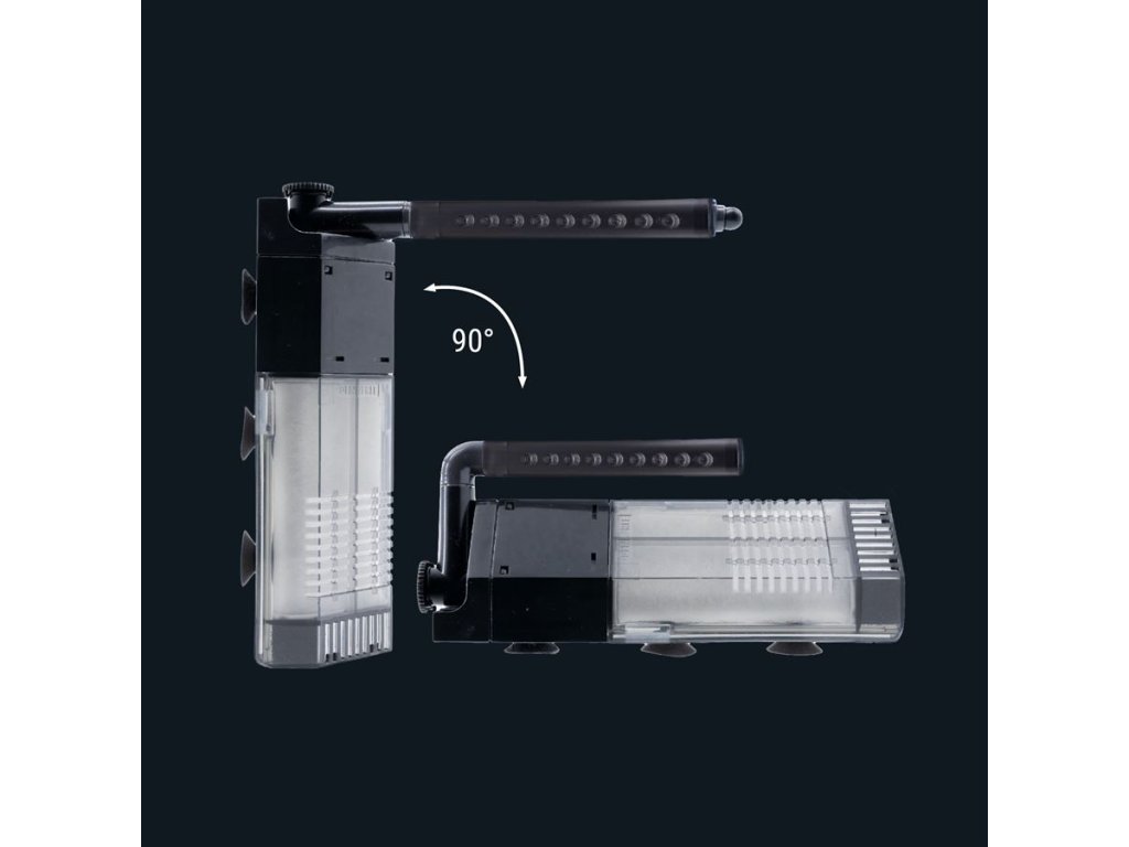 Tento rohový filtr nabízí plynule nastavitelný průtok vody (až 150 l/h) a otočný výstup o 90°, díky čemuž si proud vody přizpůsobíte podle potřeby. Díky velmi jemnému předfiltru je bezpečný i pro nejmenší krevetky. Je navržen tak, aby fungoval tiše, s minimální spotřebou energie (pouze 2 W). Údržba je rychlá a čistá – filtr stačí snadno vytáhnout a vypláchnout ve vodě z akvária.