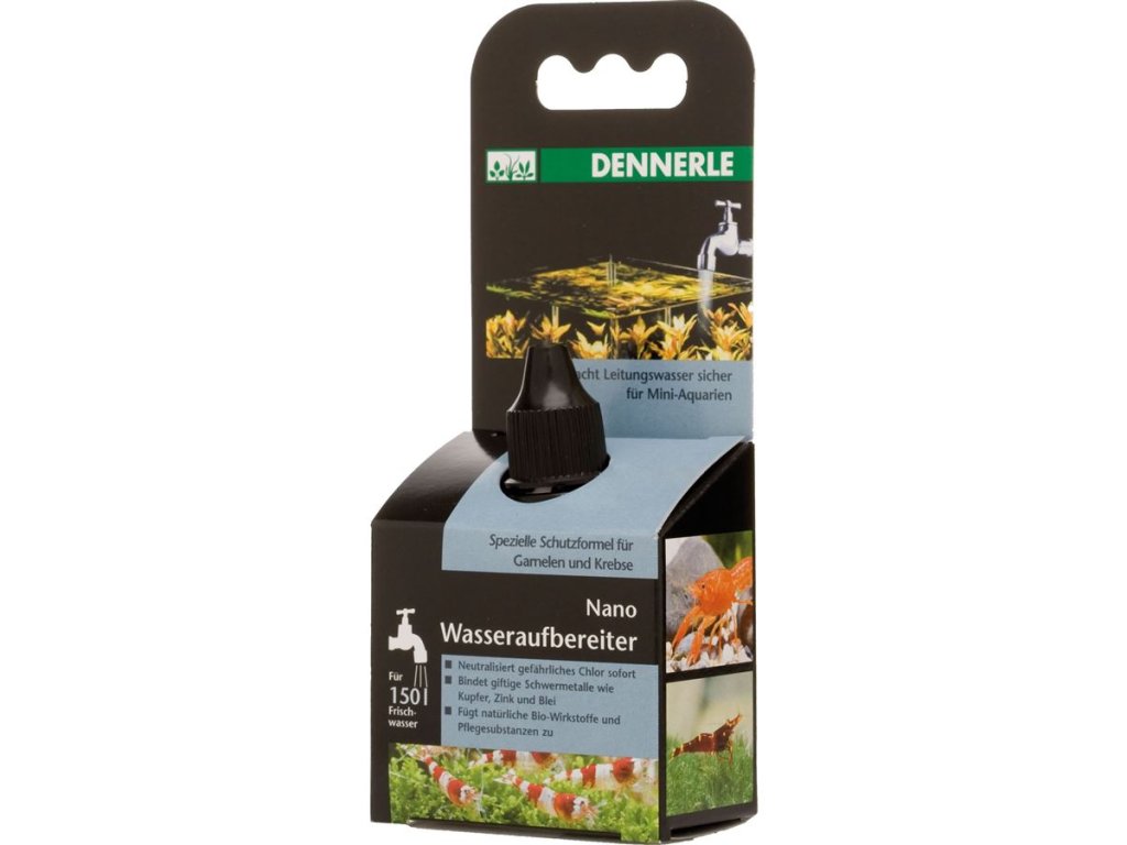 Dennerle Nano Wasseraufbereiter je přípravek určený pro úpravu vodovodní vody v miniakváriích. Neutralizuje toxické látky a dodává vodě přírodní prvky potřebné pro zdraví krevetek, krabů a dalších bezobratlých. Ideální pro pravidelnou výměnu vody v nanoakváriích.