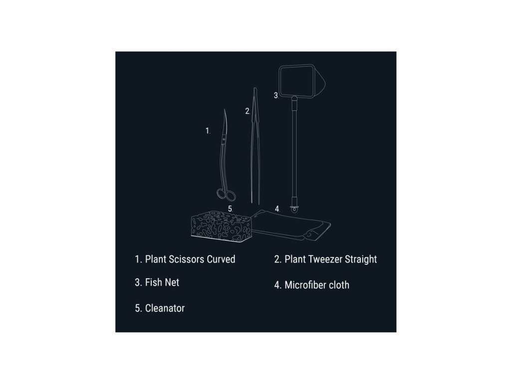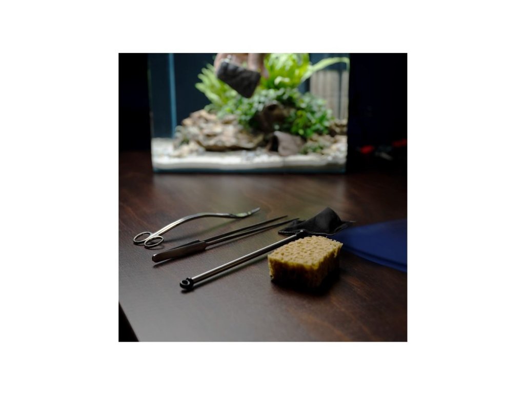 Dennerle Aquarium Care Set obsahuje vše, co potřebujete pro pravidelnou péči o sladkovodní akvárium – ať už jste začátečník, nebo zkušený aquascaper. Zakřivené nůžky a rovná pinzeta z vysoce leštěné nerezové oceli usnadní údržbu rostlin, teleskopická síťka pomůže při manipulaci s rybami a houbička s mikrovláknem zajistí čisté sklo bez škrábanců. Sada spojuje profesionální nástroje s jednoduchým použitím – ideální pro každého, kdo chce mít v nádrži pořádek i estetiku.