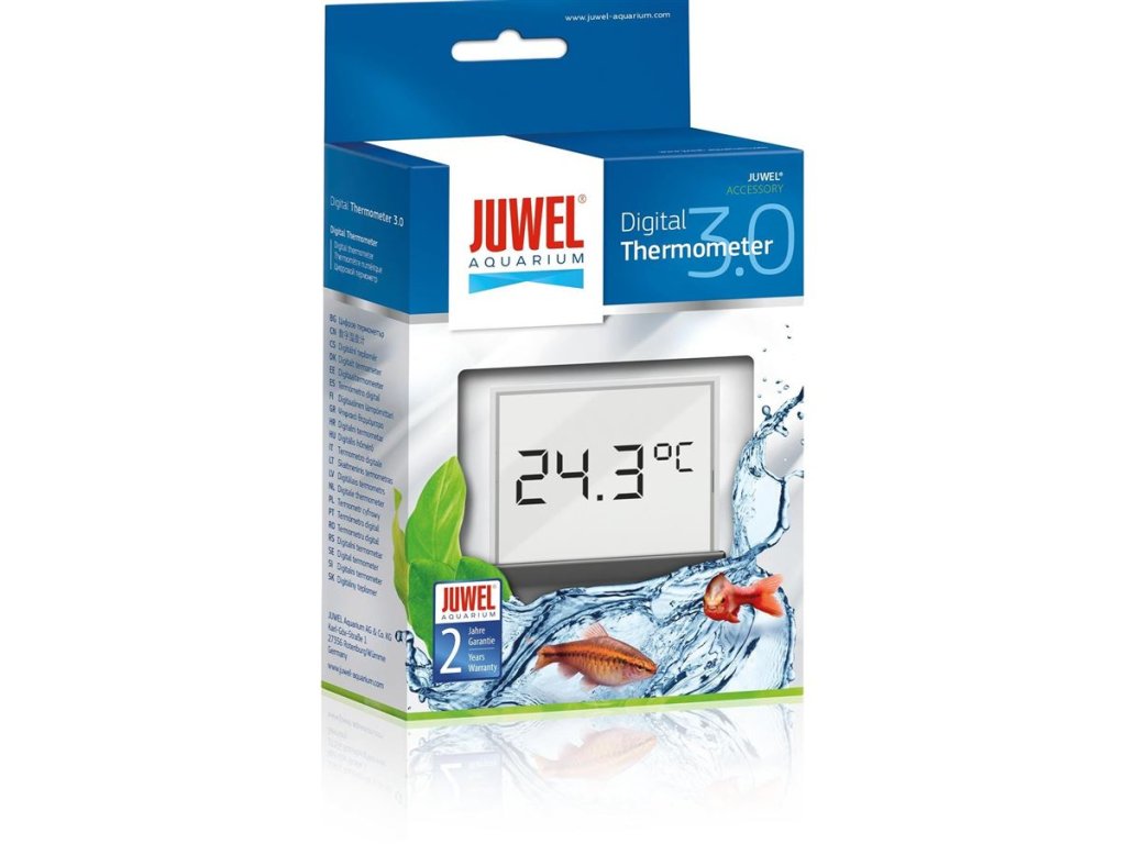 S teploměrem Juwel Digital Thermometer 3.0 můžete neustále a přesně kontrolovat teplotu akvarijní vody. Teploměr se dá velmi snadno nainstalovt na kryt akvárií Juwel a umožňuje snadný odečet teploty z velkého displaye.Technické parametry: