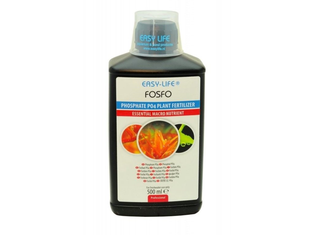 Easy-Life Fosfo dodává akváriu esenciální fosforečnany (PO₄), které jsou nezbytné pro optimální růst rostlin. V rostlinných akváriích s nízkým počtem ryb, nebo při vysoké hustotě rostlin, může snadno dojít k nedostatku fosforu – a tím i k zastavení růstu. Easy-Life Fosfo problém rychle a přesně řeší.