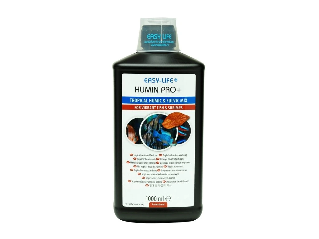 Humínové látky podporují vitalitu, zbarvení a celkovou kondici ryb, krevet, šneků i krabů. Zároveň pomáhají snižovat množství škodlivých mikroorganismů ve vodě a podporují rozmnožování ryb a krevet. Humin Pro+ také pomáhá živočichům lépe zvládat stres způsobený například těžkými kovy (měď, kadmium apod.) nebo jinými znečišťujícími látkami.