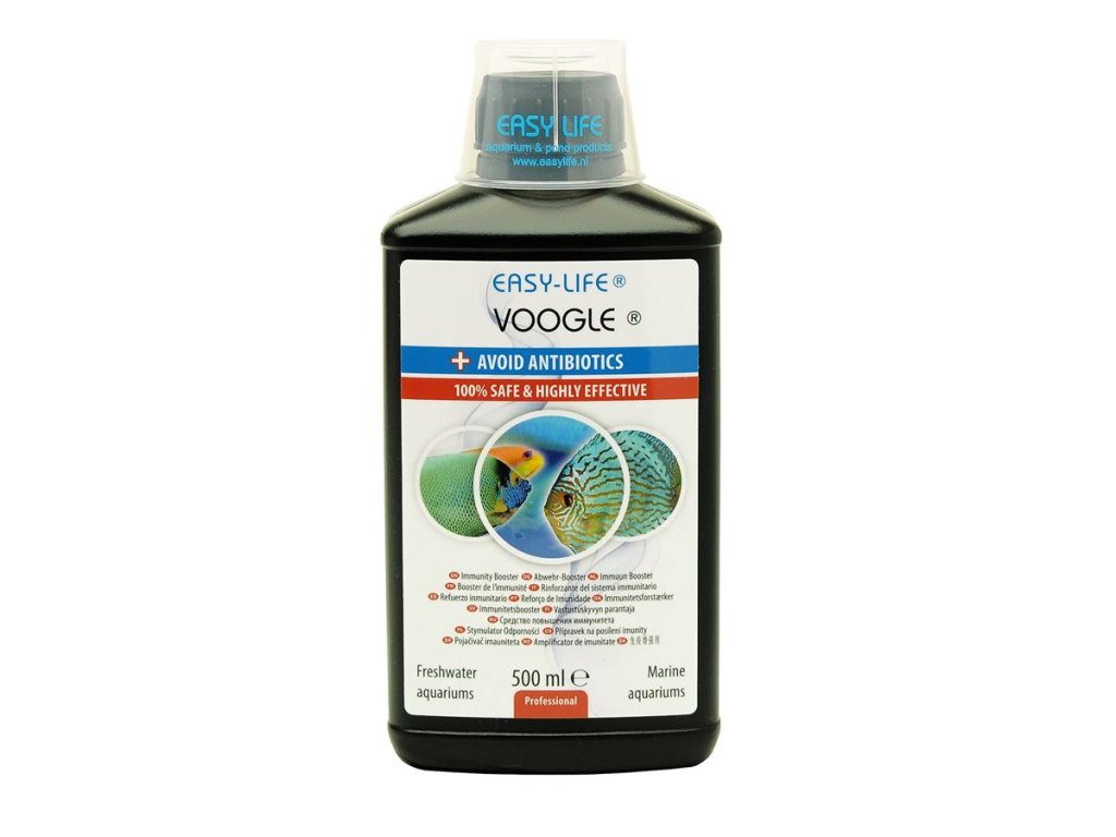 Voogle je velmi účinný a bezpečný inovativní prostředek ke zvýšení a podpoře ozdravovacího procesu. Voogle se tímto vyhýbá problémům které jsou spojenné s užíváním antibiotik.Každá ryba má vlastní imuní systém vůči patogenům. Transport, špinavá voda a větší množství patogenů ve vodě způsobuje rybám zpoustu nežádaného stresu. Stres ochuzuje živočichy o jejich energii a narušuje jejich imunitu. Takže nemoce šupin, žáber či ploutví mají větší šanci se uchytit v akváriu. Často se projevují bílými tečkami, plísní nebo infekcí. Pravidelné týdenní užívání přípravku Voogle zajistí, aby Vaše ryby zůstaly chráněny přirozennou cestou a sníží výskyt pathogenů ve Vašem akváriu.