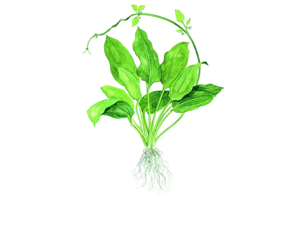 Echinodorus grisebachii ‚Bleherae‘ pochází z Jižní Ameriky a je to krásná a nenáročná akvarijní rostlina, která dorůstá výšky přibližně 20 až 50 cm. Výživný substrát výrazně podporuje její růst, avšak je vhodné ji pravidelně zastřihávat, aby nezastiňovala rostliny pod sebou a neomezovala jim přístup ke světlu.