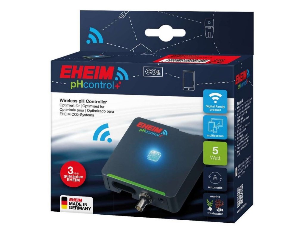 S EHEIM pHcontrol+e můžete snadno monitorovat a optimalizovat pH ve vašem akváriu pomocí chytrého telefonu nebo PC jednoduše přes WiFi připojení a váš webový prohlížeč. pH senzor měří aktuální hodnotu pH vody a pHcontrol+e automaticky zajišťuje potřebnou dodávku CO2. Ovládáním magnetického ventilu připojeného k systému CO2 se přidává tolik CO2, kolik je potřeba, dokud není dosaženo požadované hodnoty pH. Abyste toho dosáhli, musíte připojit svůj CO2 systém, tj. CO2 láhev přes redukční ventil, magnetický ventil a CO2 difuzér.3 hlavní přednosti: