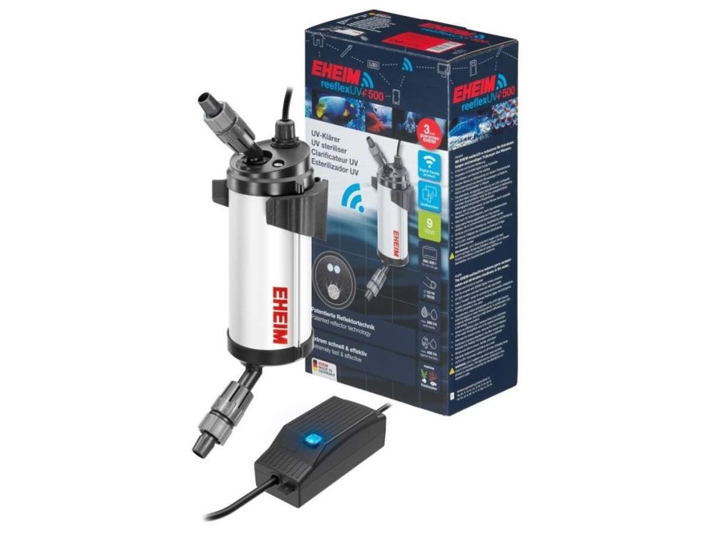 reeflexUV+e je další krok osvědčeného UV čističe reeflexUV EHEIM řízený WiFi. Princip patentované technologie reflektorů (s výrazně zvýšeným germicidním UV-C zářením) zůstal stejný. Zatímco u běžných UV čističek voda protéká kolem UV-C hořáku oklikou, u EHEIM reeflexUV+e to jde přímější cestou. Tím nedochází k žádné ztrátě energie a šetří energii a je dvakrát efektivnější. ReeflexUV+e lze propojit s dalšími produkty z rodiny EHEIM Digital a lze jej ovládat prostřednictvím zařízení s podporou WLAN (smartphony, tablety, notebooky atd.). Můžete například vybrat různé režimy, určit časy a pauzy a dokonce přepnout do režimu booster v případě silného napadení parazity. ReeflexUV+e by měl být použit jako podpora filtru, aby se redukovaly malé organismy (zárodky, spory řas, atd.) v akváriu.