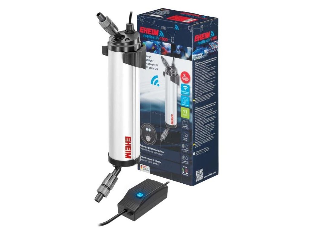 reeflexUV+e je další krok osvědčeného UV čističe reeflexUV EHEIM řízený WiFi. Princip patentované technologie reflektorů (s výrazně zvýšeným germicidním UV-C zářením) zůstal stejný. Zatímco u běžných UV čističek voda protéká kolem UV-C hořáku oklikou, u EHEIM reeflexUV+e to jde přímější cestou. Tím nedochází k žádné ztrátě energie a šetří energii a je dvakrát efektivnější. ReeflexUV+e lze propojit s dalšími produkty z rodiny EHEIM Digital a lze jej ovládat prostřednictvím zařízení s podporou WLAN (smartphony, tablety, notebooky atd.). Můžete například vybrat různé režimy, určit časy a pauzy a dokonce přepnout do režimu booster v případě silného napadení parazity. ReeflexUV+e by měl být použit jako podpora filtru, aby se redukovaly malé organismy (zárodky, spory řas, atd.) v akváriu.