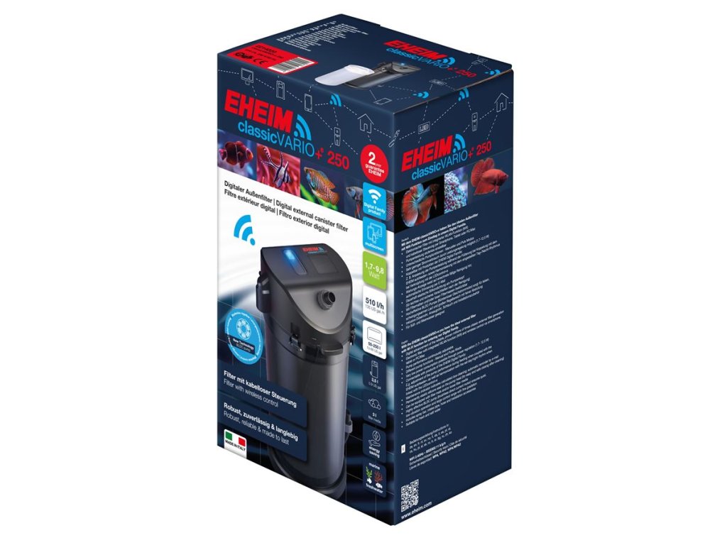 EHEIM classicVARIO+e - milionkrát ověřená chytrá verze klasického filtru s bezdrátovým elektronickým ovládáním a světově unikátním BLDC čerpadlem v externím filtru