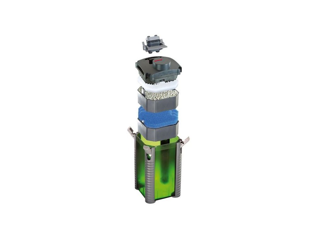 Všechny vnější filtry Eheim se na rozdíl od konkurence vyznačují vynikajícím zpracováním, nízkou hlučností a spotřebou, velkým filtračním objemem a výkonem. Filtr dále disponuje velkým výtlakem vody, což vám umožní mít filtr uložený pod akváriem.