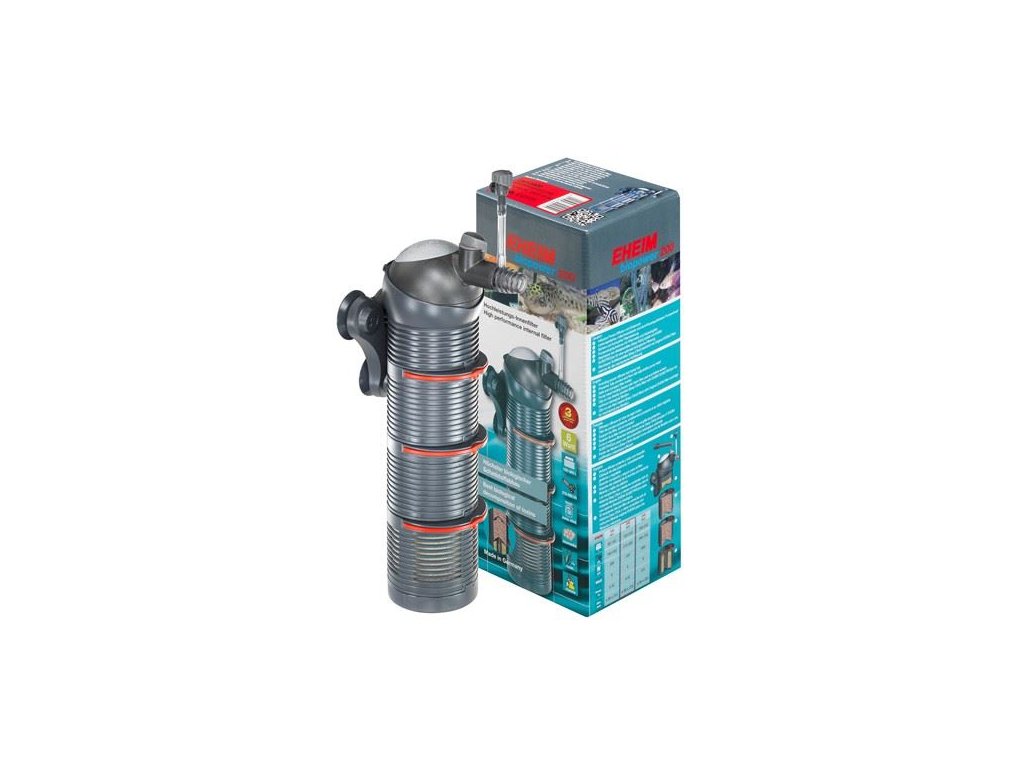 Vysoce výkonný vnitřní filtr s keramickou osičkou, včetně originálních Eheim filtračních médií pro biologickou filtraci.