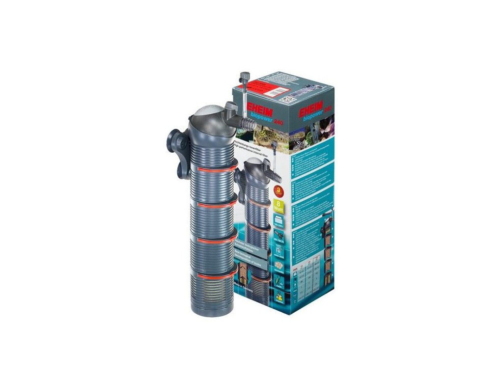 Vysoce výkonný vnitřní filtr s keramickou osičkou, včetně originálních Eheim filtračních médií pro biologickou filtraci.