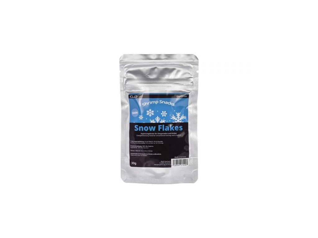 Pochoutky pro krevety, raky nebo šneky.Lahodné chutě přírodních ingrediencí různých příchutí okamžitě vzbudí zájem krevet a jiných živočichů a povzbudí jejich chuť k jídlu. Kromě toho, že jsou chutné, nabízejí Snacks Shrimp Snacks vitamíny, minerály, stopové prvky a mnoho dalšího, skvěle doplńuje základní vyživu. Jakmile se tyčinky ocitnou na dně nádrže, po relativně krátké době se rozpadnou na menší kousky, takže každá kreveta, šnek nebo rak (a zejména menší) dostanou potravu bez stresu. Velké množství pozitivních ingrediencí, které jsou v krmivu, dělá ze Shrimp Snackůi vysoce hodnotnou mezisvačinu pro akvarijní mazlíčky.Krevety a spol. shledávají naše sněhové vločky neodolatelné. Organické sójové otruby (slupka sojových bobů) jsou bohaté na vitamíny, aminokyseliny, stopové prvky a vlákninu. A svými prebiotickými vlastnostmi mají také regulační vliv na zažívání našich bezobratlých společníků.Doporučené krmení• 0,5 cm tyčinky pro 10-15 krevetIngredience100% bio sójové otrubyObsah: 30gForma: tyčinkyVyrobeno v NěmeckuDoplňkové parametry
