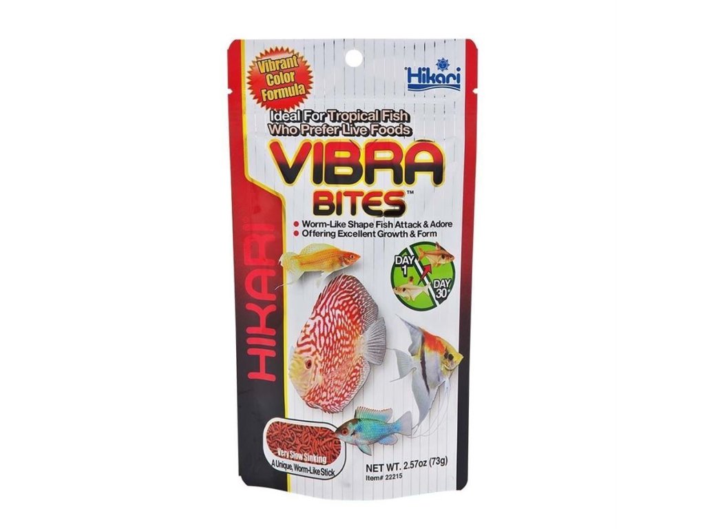 - Kompletně bezpečná alternativa krmiva Hikari® TROPICAL VIBRA BITES ™ bylo vyvinuto tak, aby pelety měly tvar a vzhled živé krvavé patentky, kterou ryby tak zbožňují. Jedinečně vyvážená formulace nabízí výživné hodnoty klasických patentek a přitom neexistuje riziko parazitárních a bakteriálních nákaz. Jedinečné přísady nabízejí vynikající chuť, které ryby neodolají.