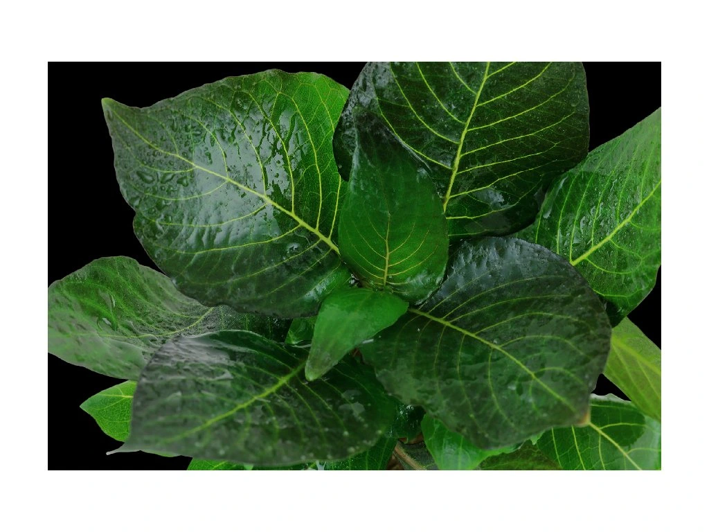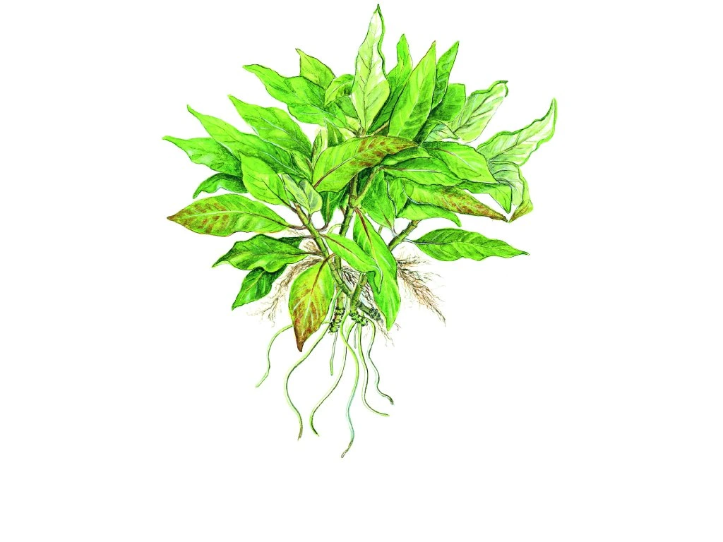 Listy mají po opuštění pěstírny tmavě hnědozelenou barvu, ale po adaptačním období v akváriu se zbarvují do světle zelené a na spodní straně získávají stříbřitě bílý odstín. Při silném osvětlení mohou nejmladší listy získat červenohnědé zabarvení, zatímco při slabším světle starší listy časem odumírají. Ty jsou však často nahrazovány novými postranními výhony, takže rostlina si udržuje hustý a zdravý vzhled.