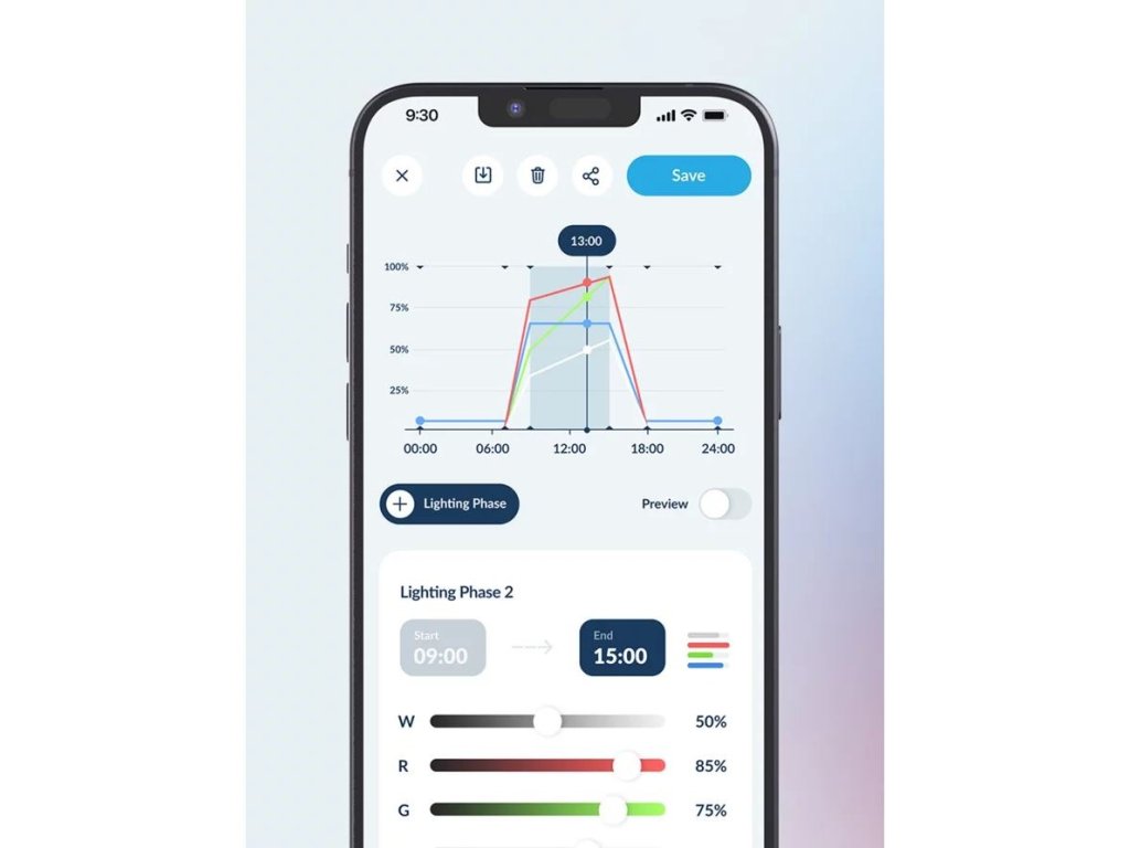 Nejjemnější nastavení barev světla pro optimální osvětlení. S plnou kontrolou WRGB můžete individuálně spravovat každou barvu a vytvořit tak dokonalé světelné spektrum pro vaše rostliny a ryby.