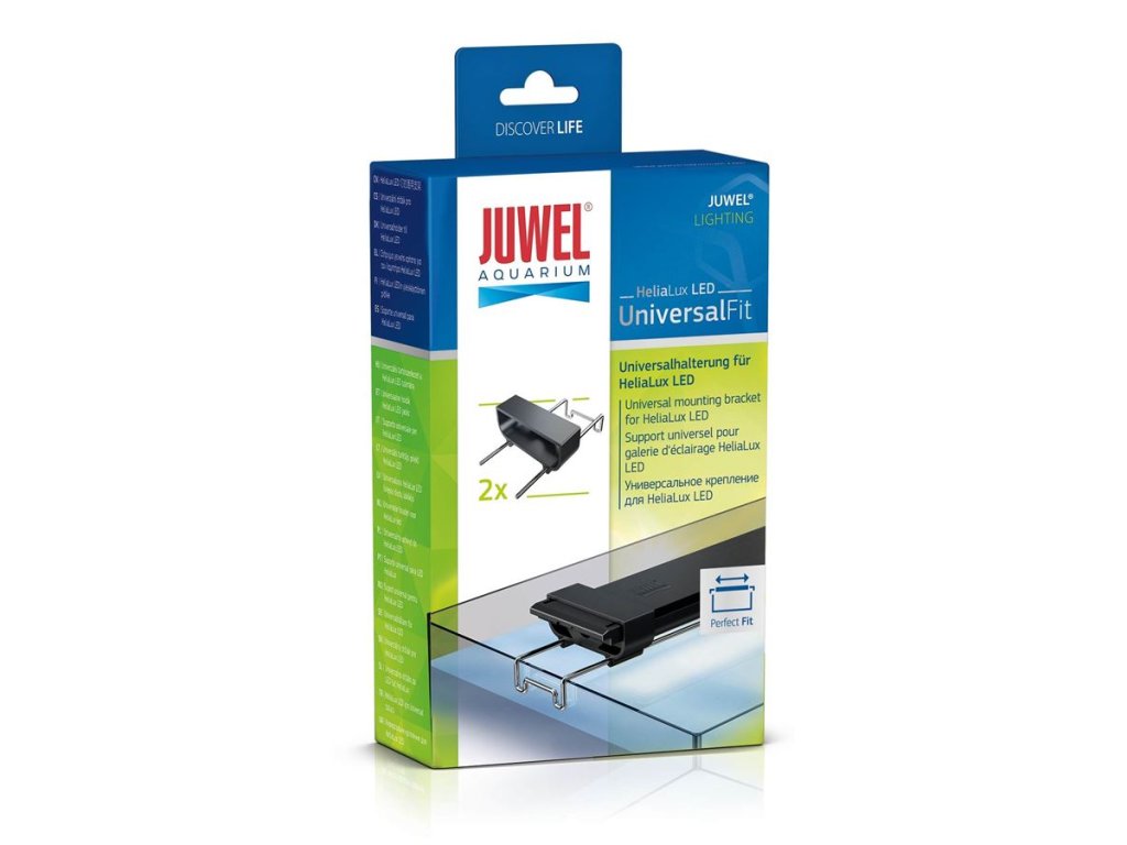Helia Lux LED Univerzální držákUniverzální držák UniversalFit umožňuje jednoduchou instalaci světelných jednotek HeliaLux LED, a to i na všech akváriích jiných výrobců (ne JUWEL Aquarium).