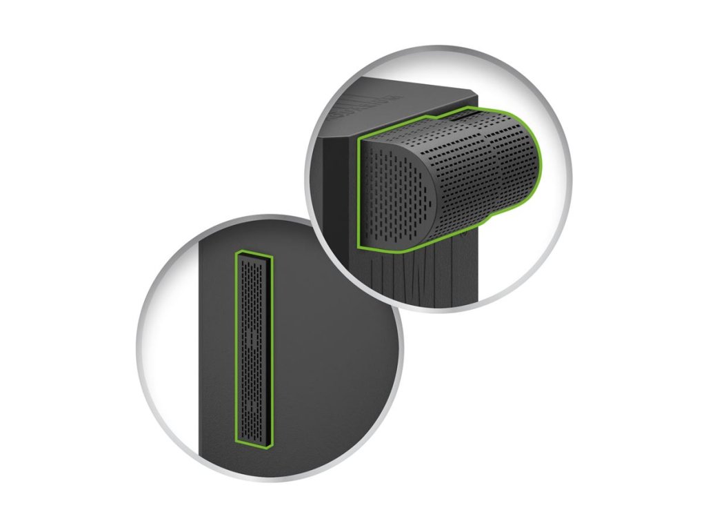 - Menší sací otvory - Speciální tvar umožňuje zmenšení velikosti sacích otvorů nahoře a po stranách
