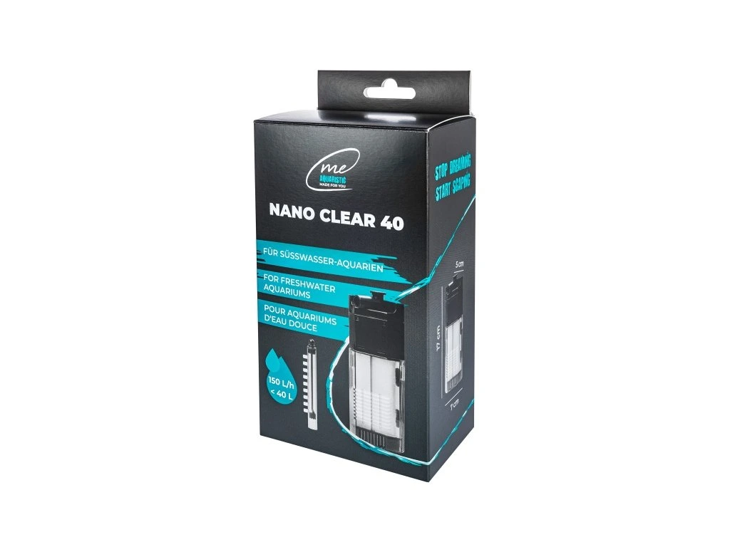 Me Nano Clear 40 je rohový filtr, který spolehlivě zajišťuje čistou vodu v nano sladkovodních akváriích do 40 litrů. Díky výkonu 150 l/h a možnosti plynulé regulace průtoku se snadno přizpůsobí potřebám akvária.