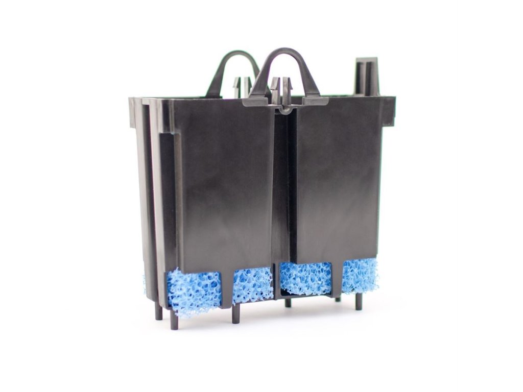 V kaskádovém filtru FZN PRO plní funkci předfiltru jemné prvky z hrubé filtrační houby. Jejich válcový tvar umožňuje optimální využití filtrační plochy a také odpovídajícím způsobem vyplňuje koš. Houby by měly být umístěny v nádobě umístěné pod ovládacím knoflíkem.