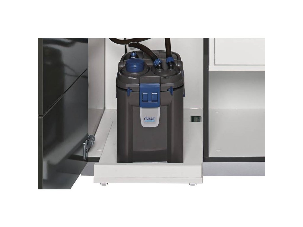 Výsuvná police: Spodní skříňka je vybavená výsuvnou policí pro vnější filtr. Ideální ve spodní skříňce s vnějším filtrm BioMaster. Při čištění je pak možno pohodlně dosáhnout na předfiltrační modul EasyCLean.