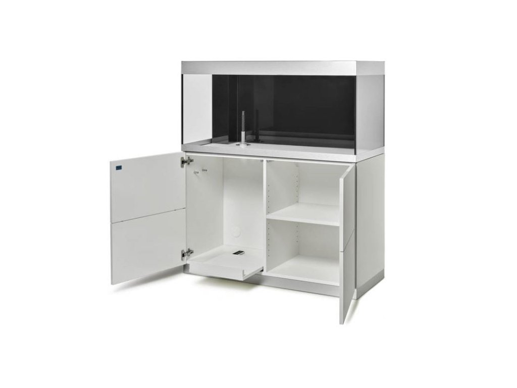 Jednoduchá instalace: Stabilní kovové nohy jsou kdykoliv snadno přístupné přes vnitřek skříňky. Zajišťují bezpečnou a optimální stabilitu akvária
