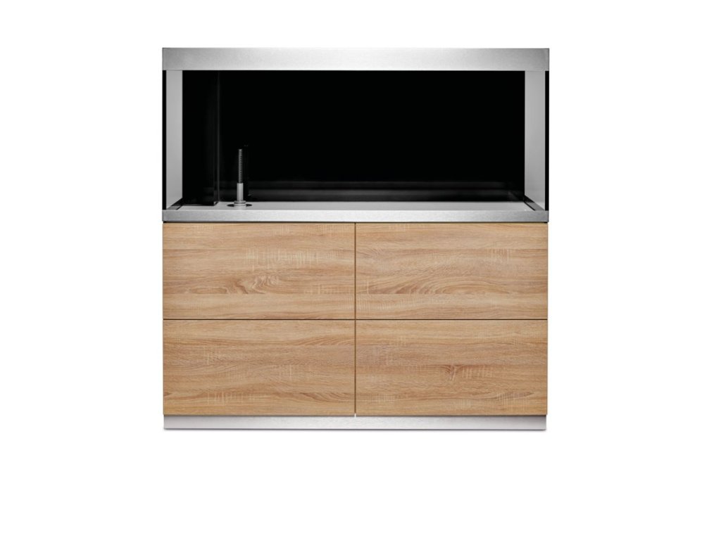 Jednoduchá instalace: Stabilní kovové nohy jsou kdykoliv snadno přístupné přes vnitřek skříňky. Zajišťují bezpečnou a optimální stabilitu akvária