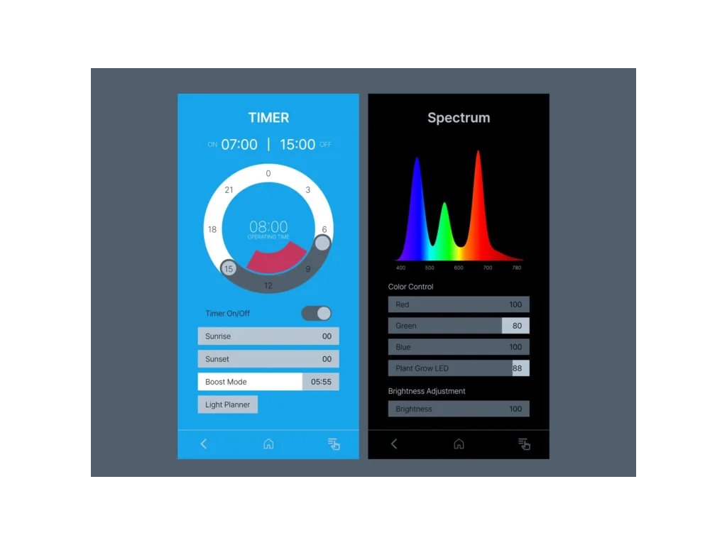 Klíčové výhody: pokročilé spektrum s RGB a růstovými LED, vysoký PPFD pro rychlé zakořeňování a hustý porost, věrné zobrazení barev, až o 30 % vyšší jas při nižší spotřebě, prémiové titanové provedení a chytrá aplikace s Boost režimem, simulací východu/západu a plánovačem.