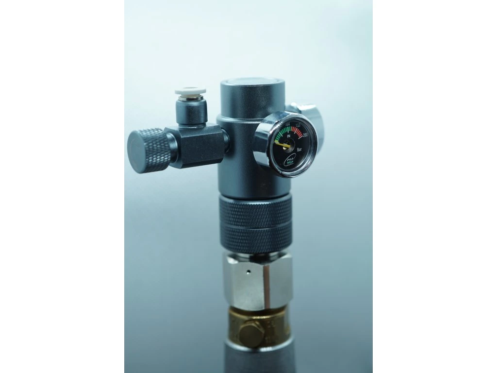 Díky standardizovanému připojovacímu závitu W21.8 je redukční ventil kompatibilní s většinou běžně dostupných znovuplnitelných CO₂ lahví a je ihned připraven k použití.