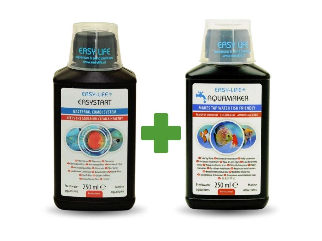 AquaMaker okamžitě neutralizuje škodlivé látky ve vodě, zatímco EasyStart dodává aktivní bakterie, které pomáhají vytvořit stabilní a zdravé prostředí pro ryby.