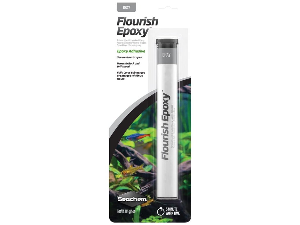 Seachem Flourish Epoxy je dvousložkový epoxidový tmel, který lze použít při úpravě terénu k upevnění materiálů, jako je kámen a naplavené dřevo, pro stabilnější základy v akváriích s rostlinami.Hlavní přednosti