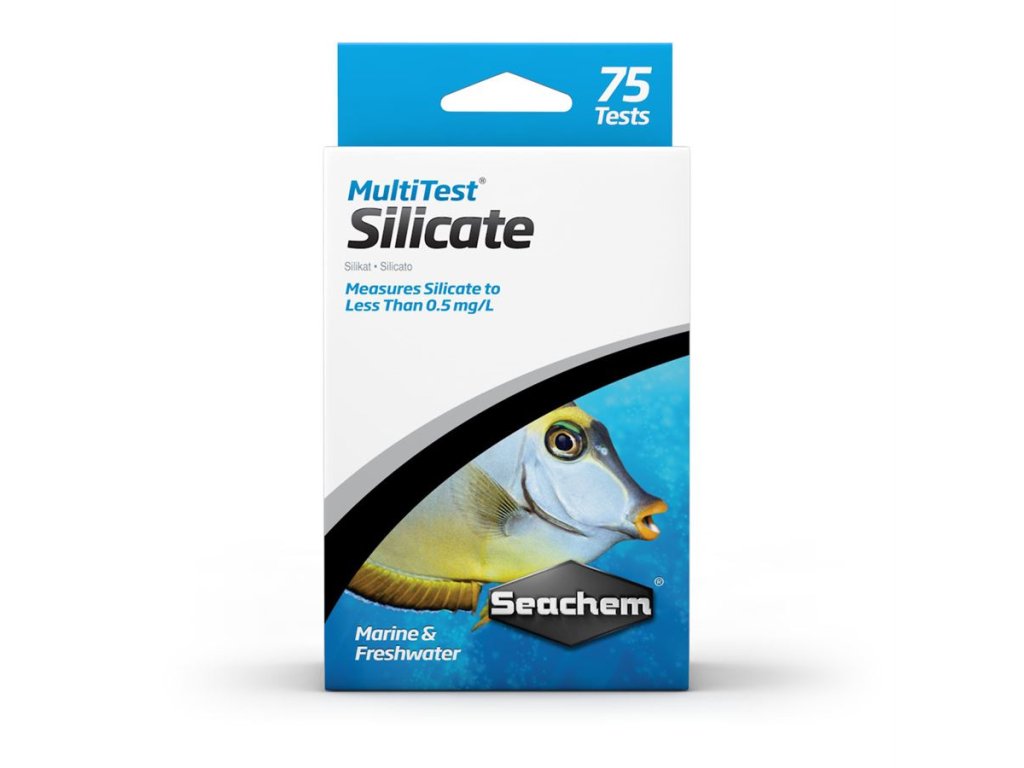 Seachem MultiTest™ Silicate je precizní testovací sada pro akvária, která měří rozpuštěné křemičitany (SiO₄²⁻) již od < 0,5 mg/l. Křemičitany nejsou toxické, ale nadměrné hodnoty vedou ke zvýšenému výskytu rozsivek (hnědých řas). Test je vhodný pro mořská i sladkovodní prostředí a zahrnuje referenční vzorek pro ověření správnosti výsledků.