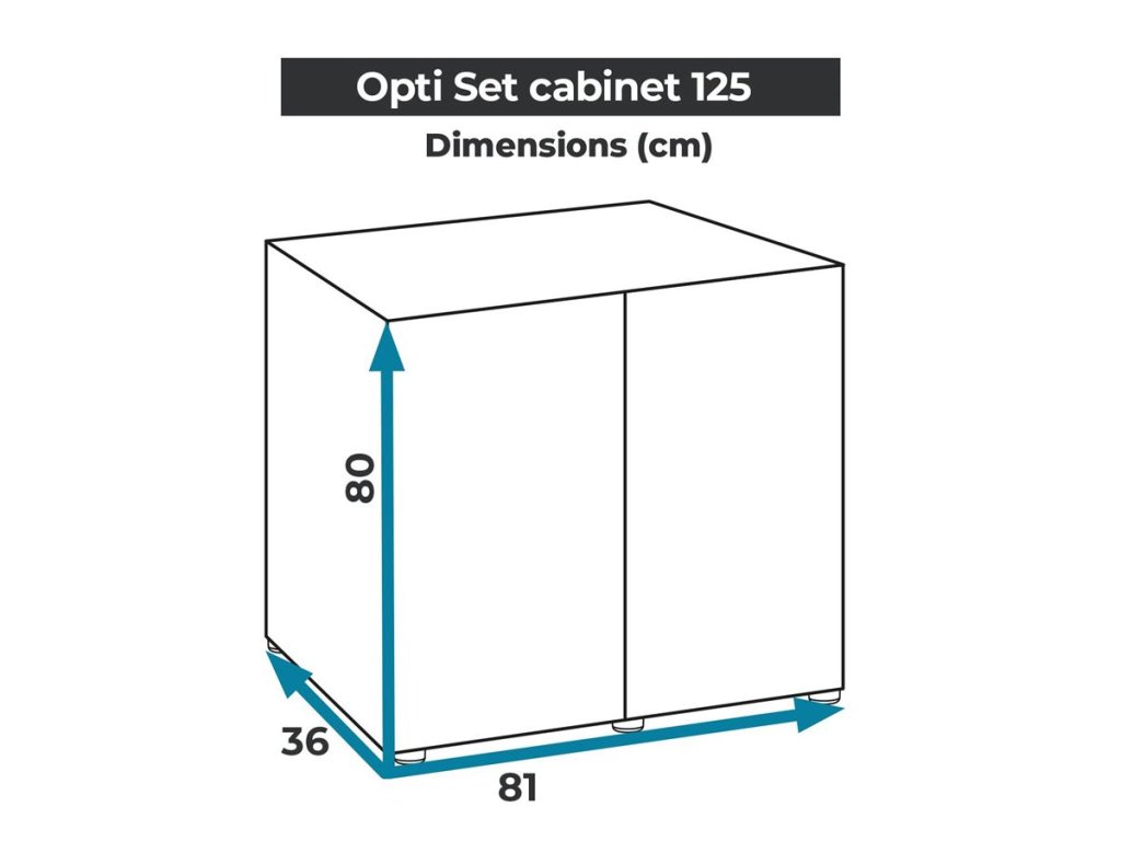 Díky minimalistickému designu a lesklému povrchu se nábytek ideálně hodí do moderních designových interiérů a dokonale ladí s akvárii z řady Opti Set, s nimiž tvoří soudržný a elegantní celek.Uložný prostor