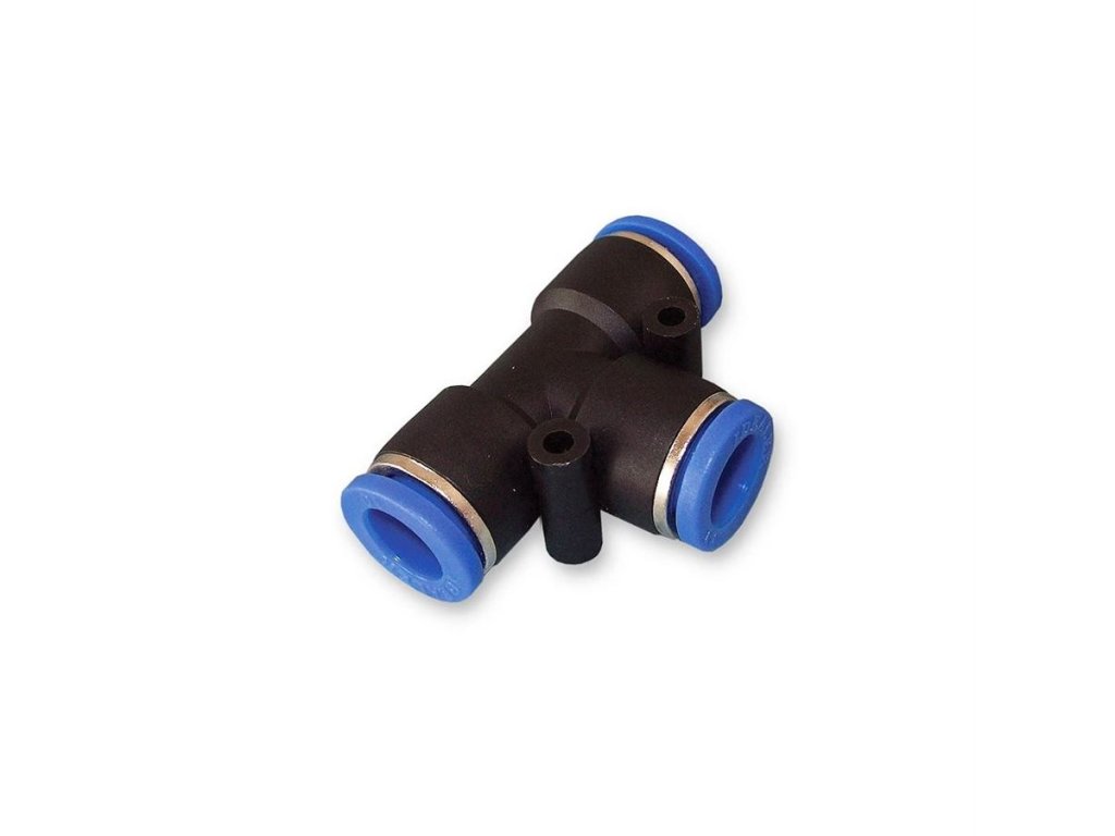 Univerzální nástrčná spojka ve tvaru T, která je ideální pro rozdělení tlakových rozvodů z polyamidových trubek. Díky nástrčnému systému připojení je montáž rychlá, jednoduchá a bez nutnosti použití nářadí. Skvěle se hodí pro rozvody vzduchu, vody nebo CO2 systémy v akváriích a teráriích.