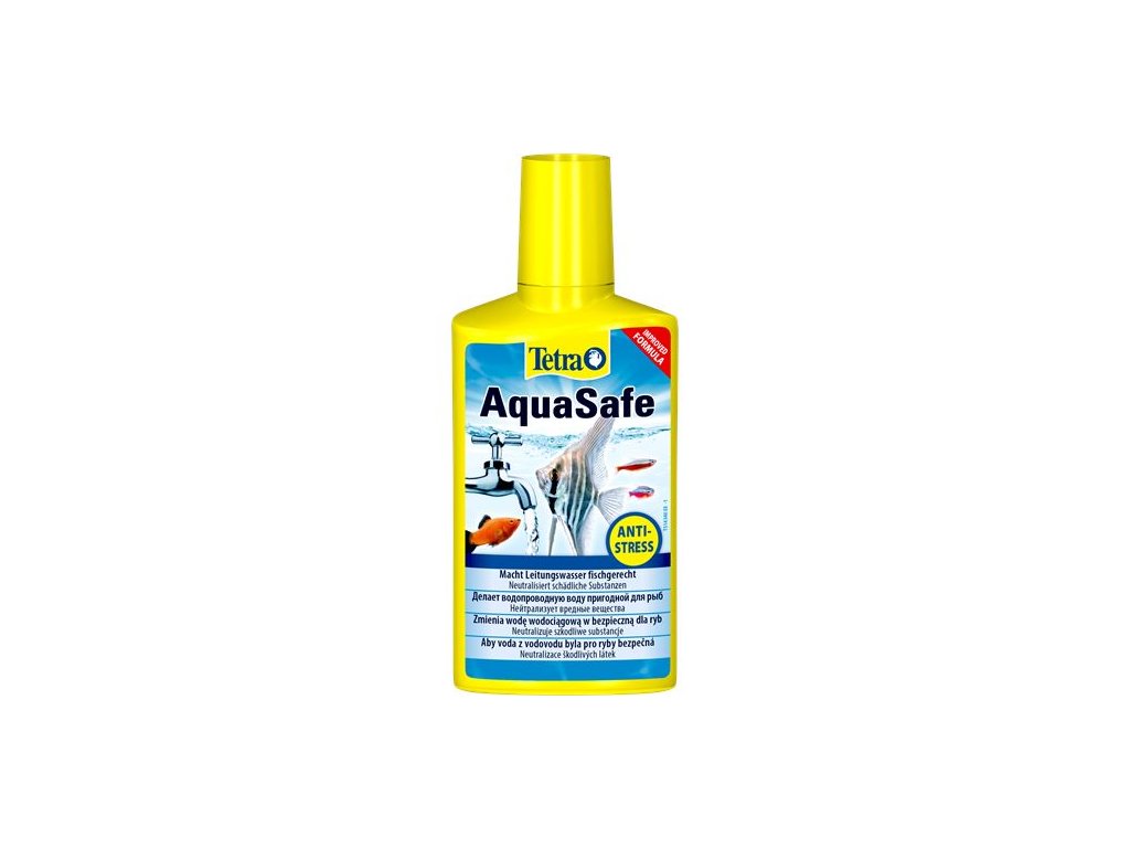 Tetra AquaSafe okamžitě upravuje vodu z vodovodu tak, aby byla bezpečná pro ryby i rostliny. Neutralizuje škodlivé látky jako chlór, chloramin nebo těžké kovy a zároveň chrání žábry a sliznice ryb přírodními extrakty. Vitamíny skupiny B snižují stres, podporují vitalitu ryb a posilují jejich obranyschopnost.