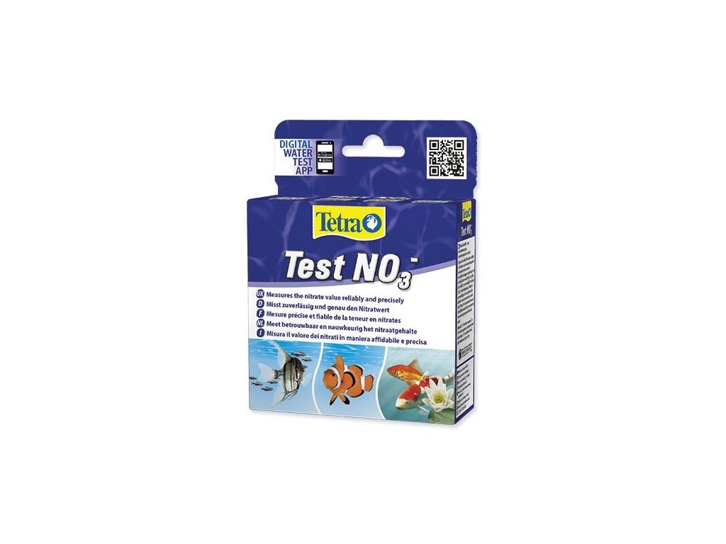 Tetra Test NO₃ umožňuje přesné stanovení koncentrace dusičnanů (NO₃⁻) ve sladkovodních, mořských akváriích i zahradních jezírkách. Dusičnany jsou výslednou složkou dusíkového cyklu a i když slouží jako živina pro rostliny, jejich nadbytek může vést k přemnožení řas a negativně ovlivnit zdraví ryb. Tato testovací sada vám pomůže snadno určit, zda je jejich koncentrace v bezpečném rozmezí.