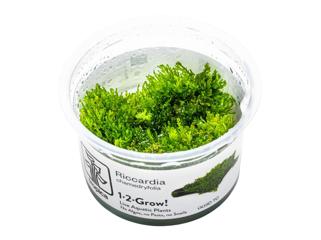 Riccardia chamedryfolia je výrazná játrovka (mech), která dodává aquascapu jemnou, detailní strukturu. Je známá svým delikátním, korálovitým vzhledem a je ideální pro zvýraznění dekorací – ať už přichycená na kamenech, kořenech, nebo použitá jako nízký koberec. Její sytě zelená barva podporuje přirozený, vyzrálý vzhled akvária a je oblíbená mezi aquascapery hledajícími jemné, organické detaily.