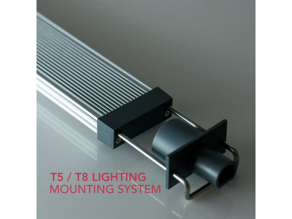 | Hliníková konstrukce a čirý silikon: Vodotěsné svítidlo Twinstar, určené do krytu. Lze nainstalovat do řady setových akvárií nebo využít adaptér pro patice T5 a T8. |
