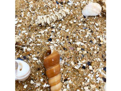 Směs písku a drcených mušlí s šnekovými ulitami, 100 % přírodní, podporuje přirozené chování ryb, ideální pro biotopy Velkých afrických jezer, balení 3 kg.